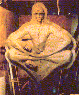 The third, animal aspect is also a true part of man. Therefore, we see the kneeling man